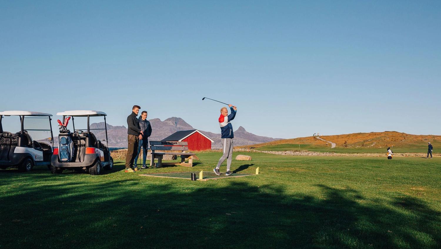 Kun 11 km (10 min i bil) fra sentrum av Bodø ligger Bodø Golfpark på Myklebostad. Banen har en fantastisk beliggenhet med utsikt mot Landegode og Lofotveggen.