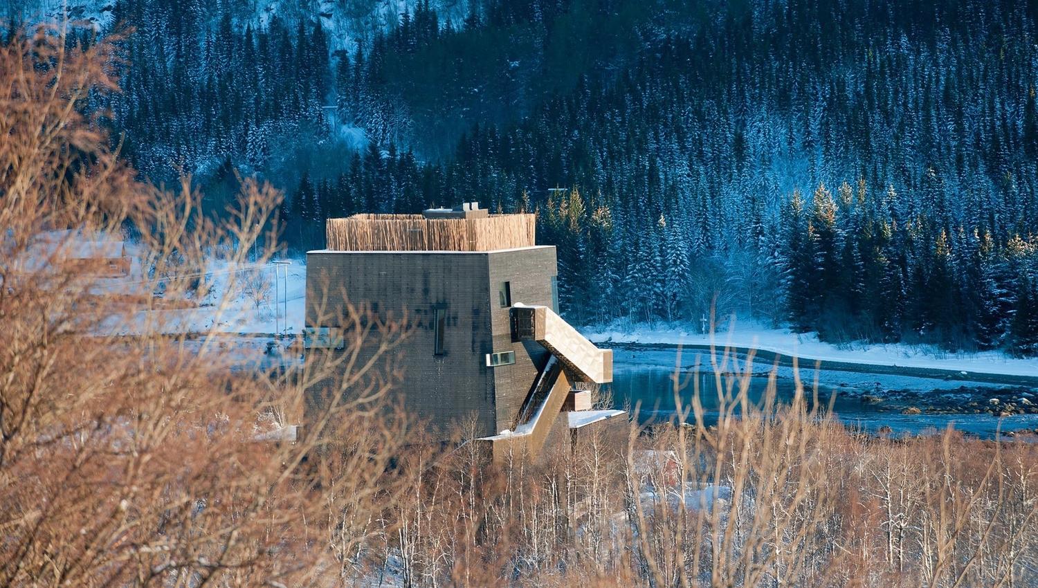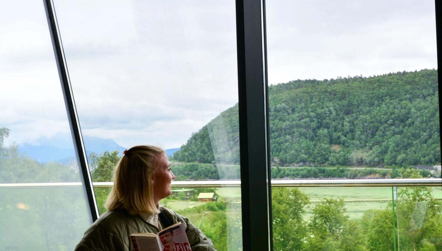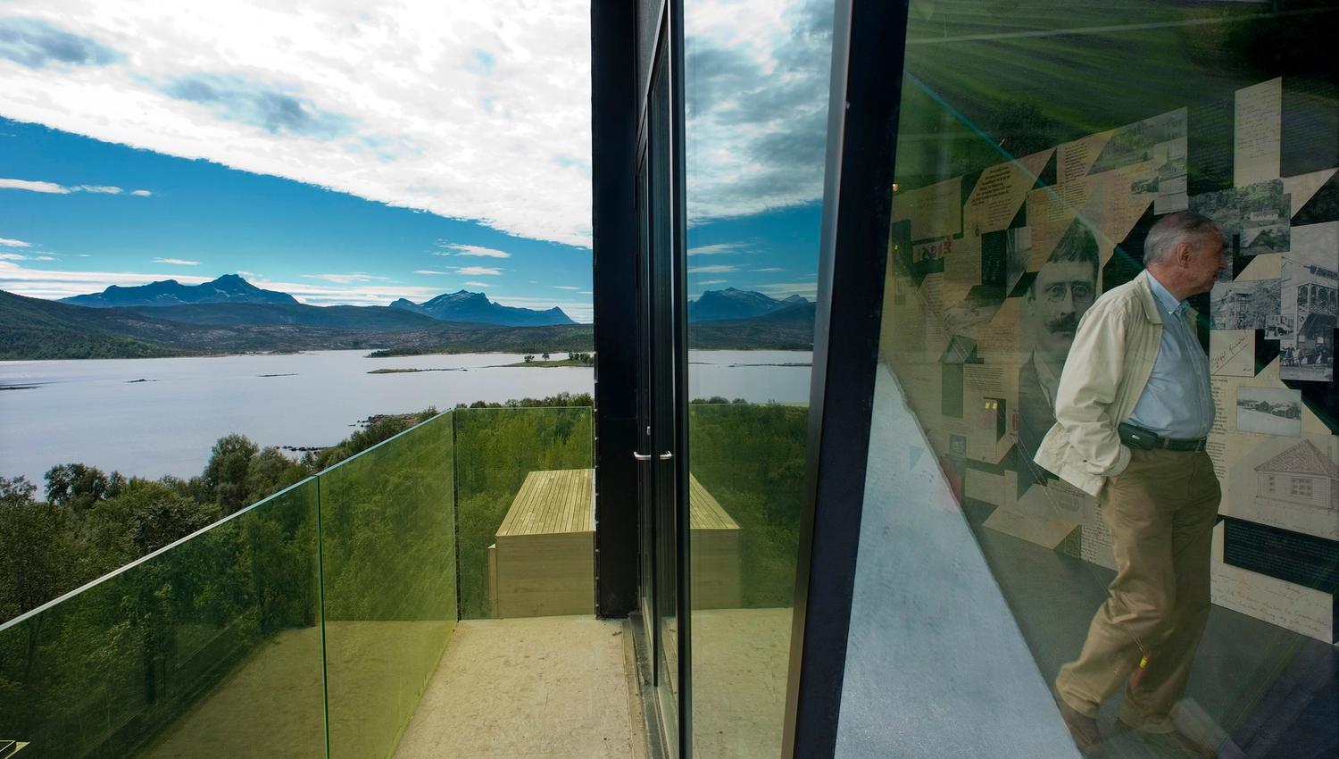 Hamsuns romanfigurer har etterlatt seg spor i byggets arkitektur. I utstillingen kan du utforske Knut Hamsuns omstridte liv og litteratur. Vinduene og balkongene oppmuntrer deg til å se og lytte til det landskapet som Knut Hamsun vokste opp i, og som har gitt inspirasjon til verdenskjente bøker som Pan, Markens grøde og Landstrykere.