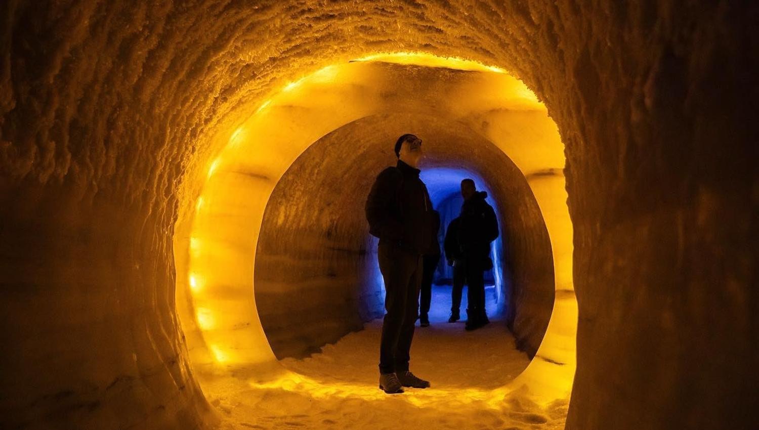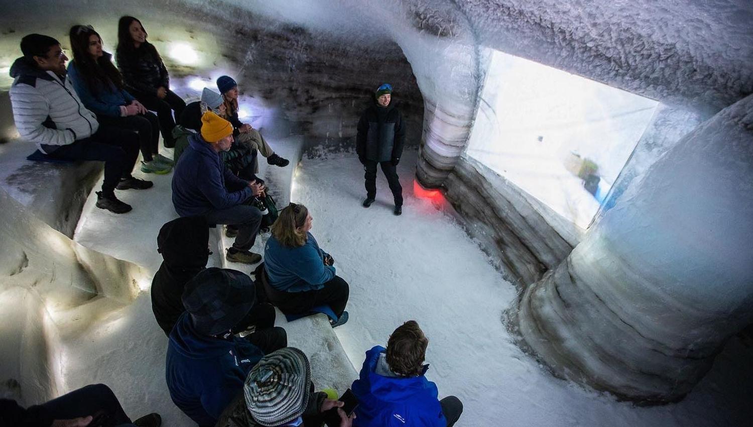 Tunnelen er hogd inn i isen med gangar og rom og har ein kinosal. Naturvegleiaren tilpassar informasjonen til gruppa, og gjer turen spennande og lærerik også for ungar. Totalt tek den guida turen om lag 2,5 timar. Merk at istunnelen berre er tilgjengeleg saman med naturvegleiar på guida tur.