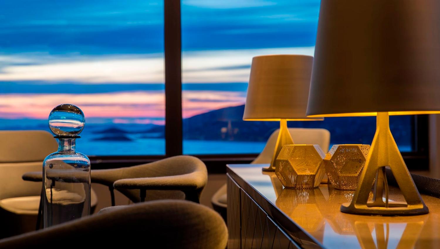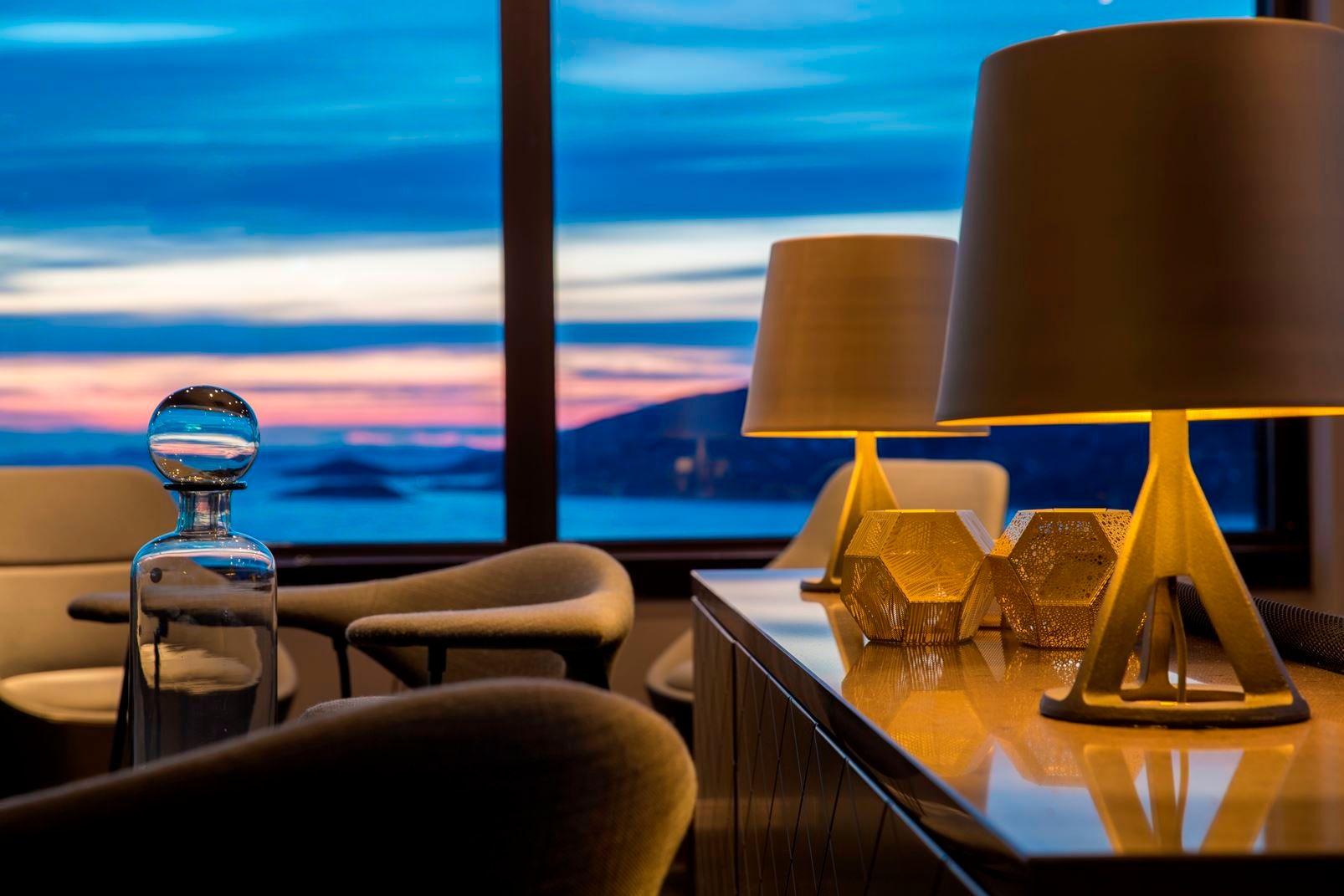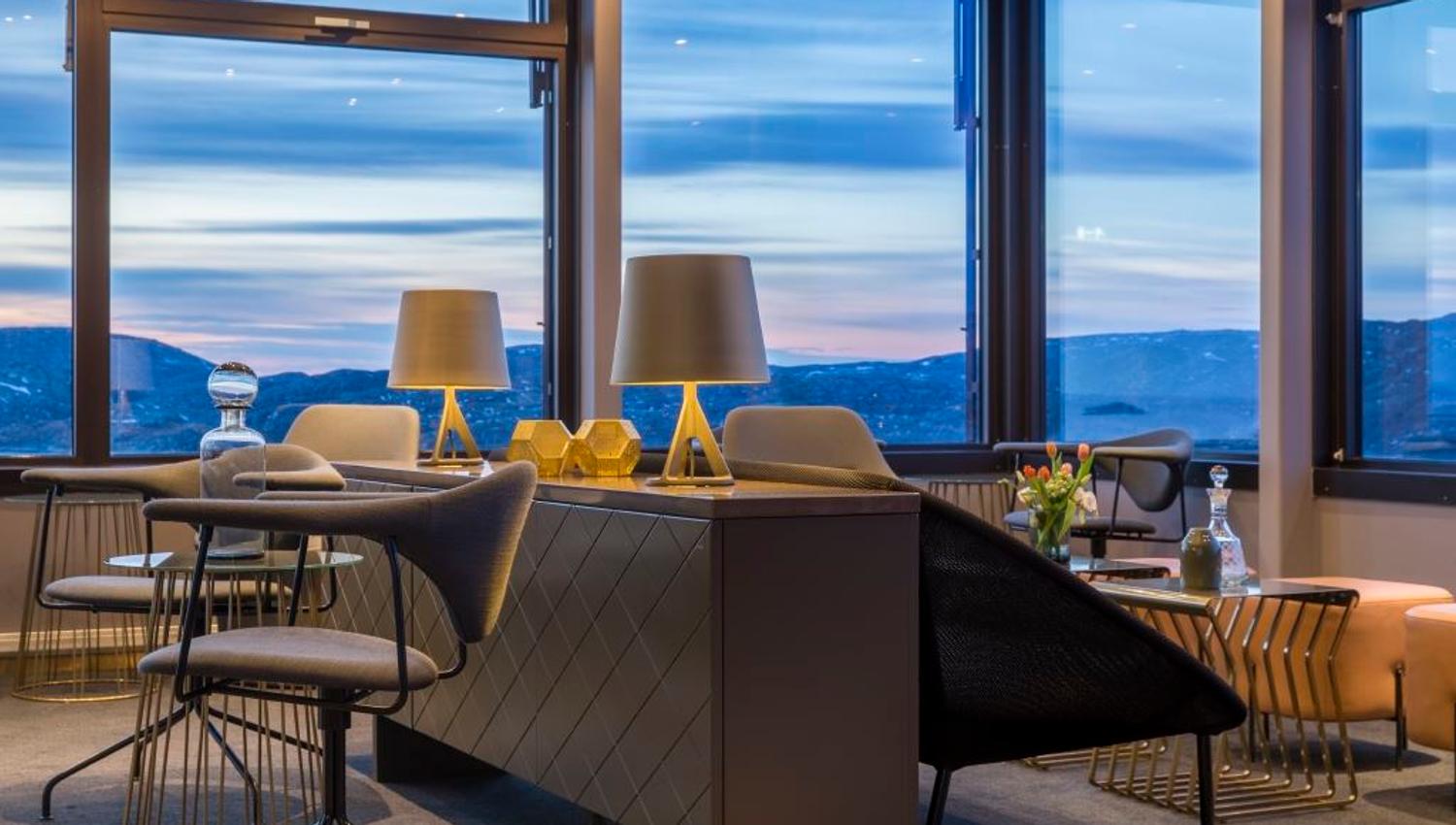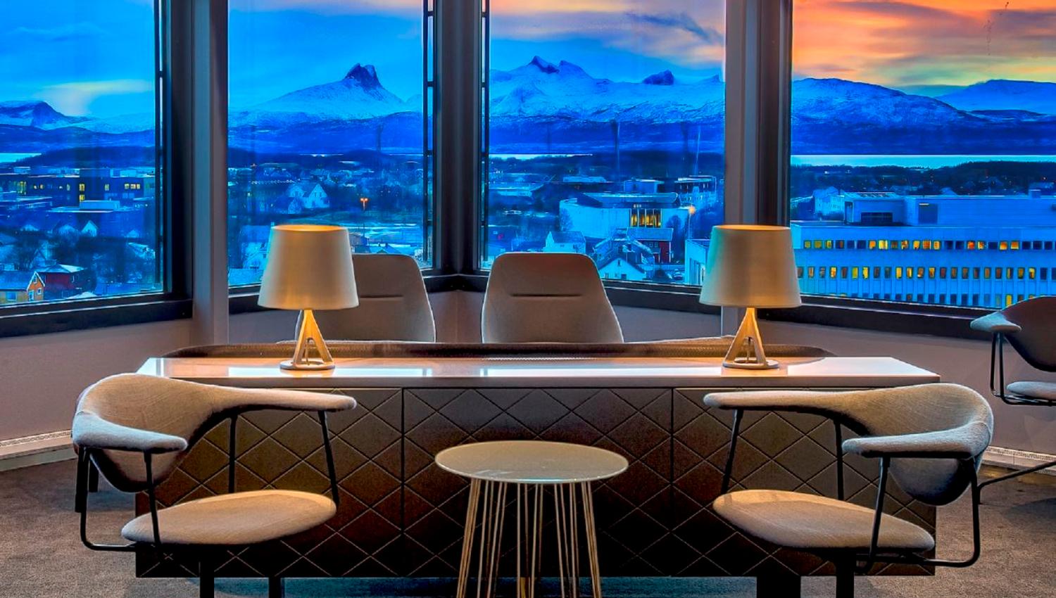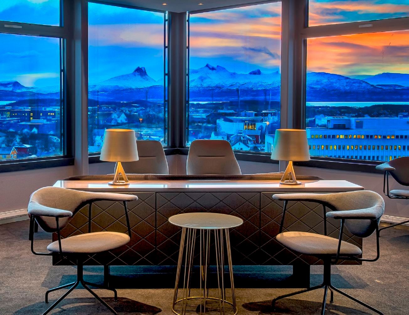 Slapp av med en cocktail i Top13 og nyt den fantastiske utsikten over nordlyset om vinteren og midnattsol om sommeren.