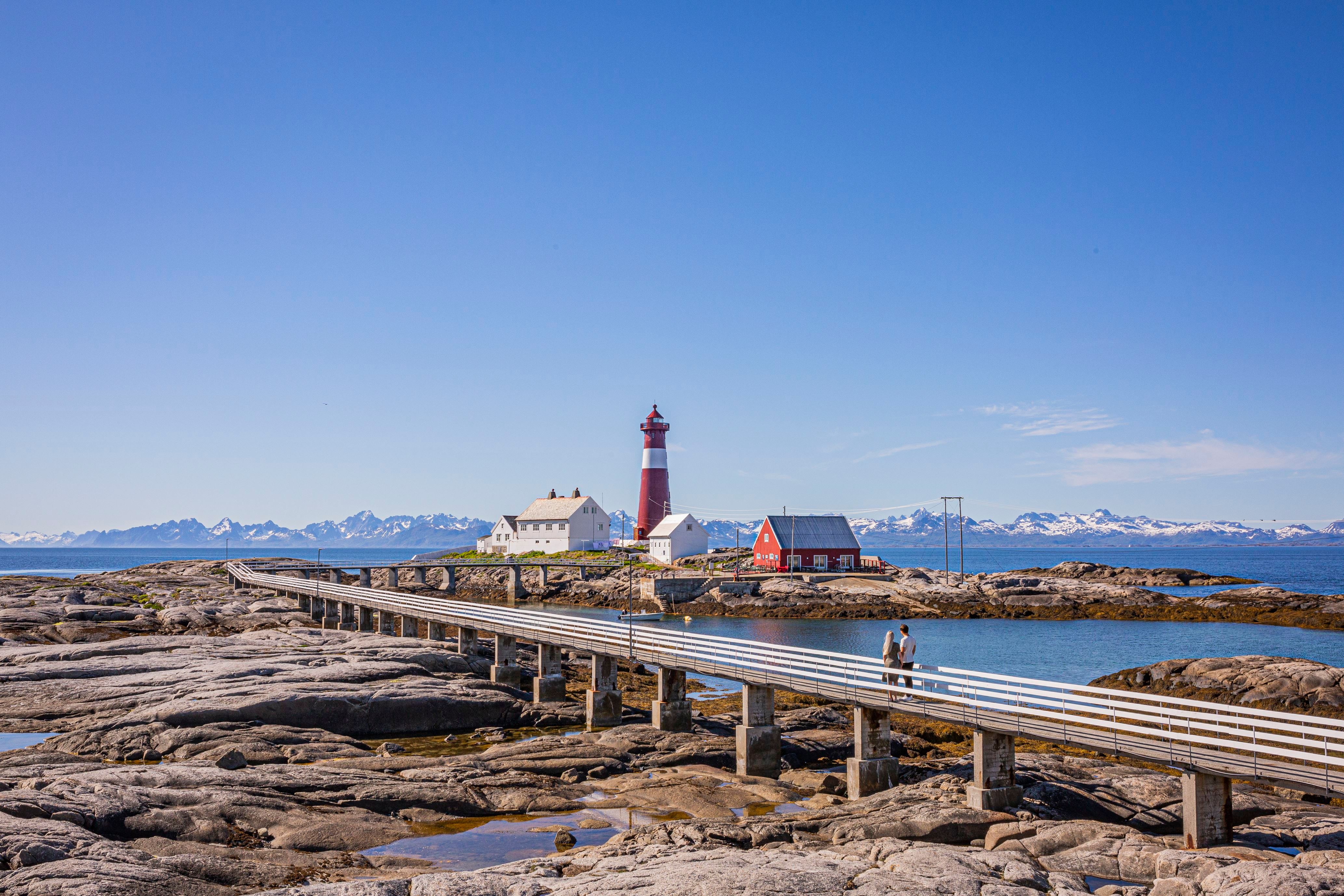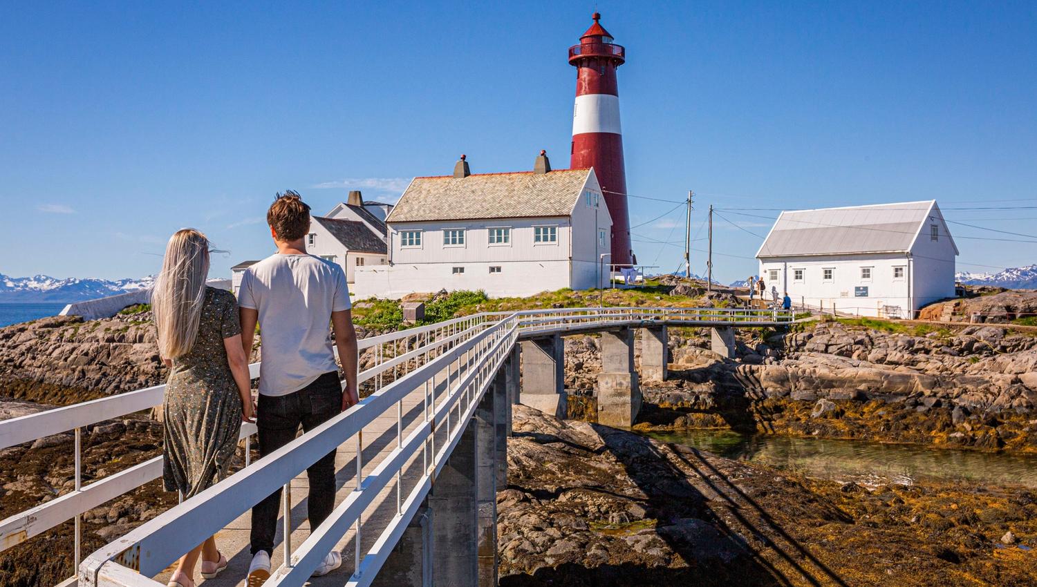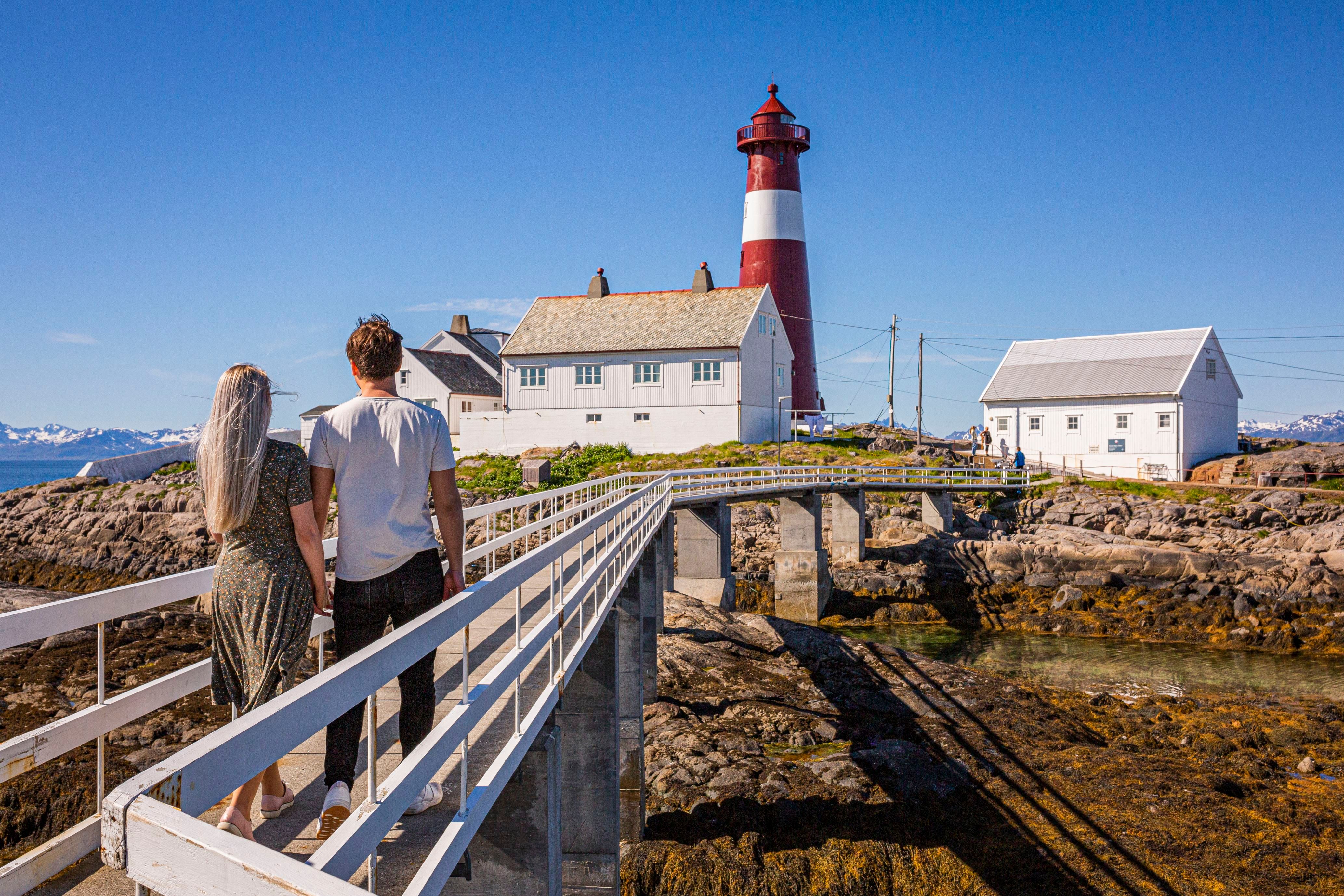 En gangbro på 250 meter tar deg ut til Tranøy fyr som ligger i Hamarøy kommune. Fyret ble bygget i 1864, og er i dag automatisert og i full drift. Vår restaurant tilbyr hjemmelaget mat med de beste råvarer fra området. Anlegget har opptil 40 sengeplasser fordelt på 16 rom av ulik størrelse. Hos oss kan du enten bare VÆRE, eller du kan ta en guidet tur i fyrtårnet, fiske fra bergene på fyret, hoppe i havet, se på ærfuglene, ta bilde av klesvasken som vaier i vinden med Lofotveggen i bakgrunnen, gå eller sykle på tur i vår mektige natur. Hjertelig velkommen:)