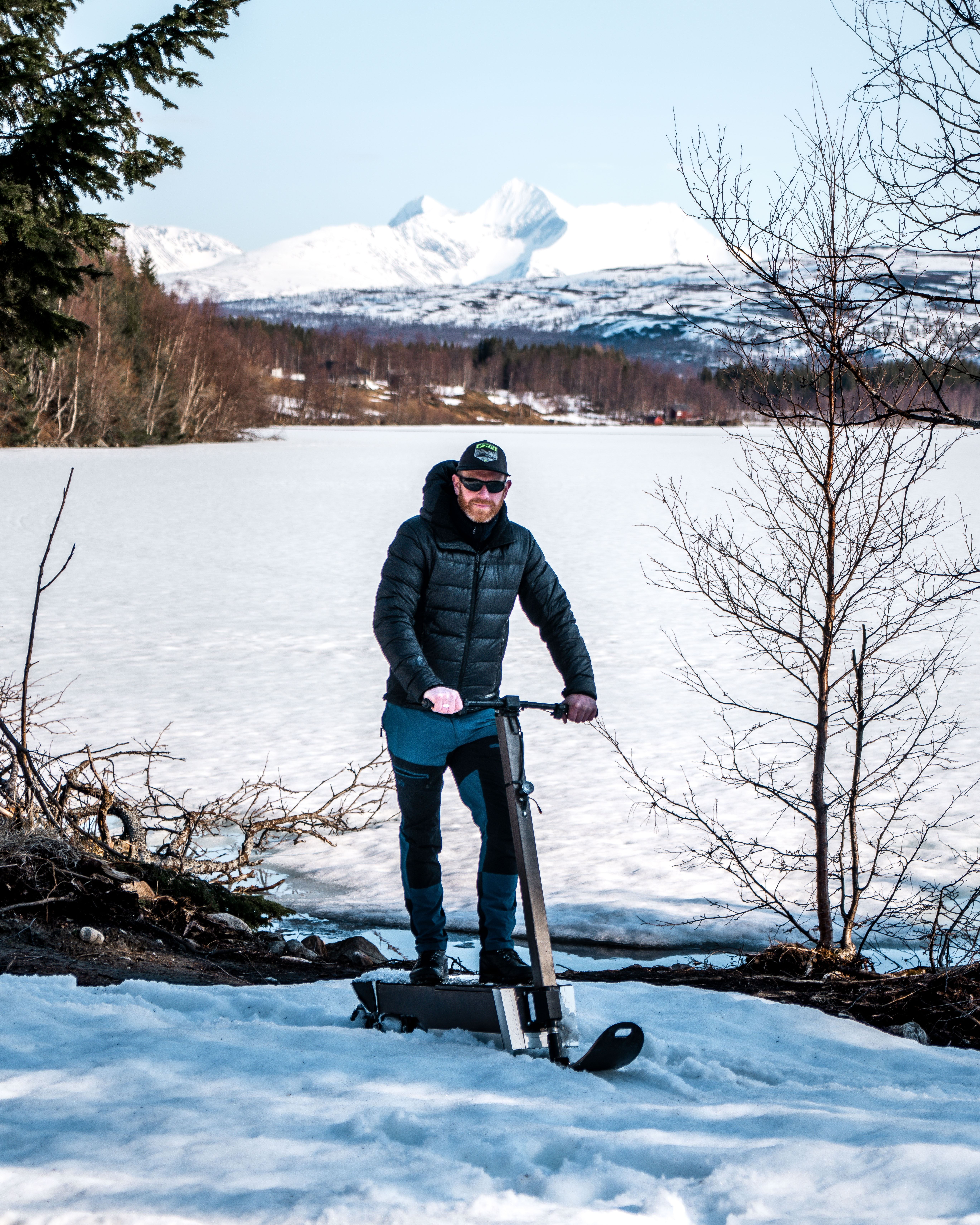 Bare 10 minutters kjøring fra Bardufoss Hotell kan besøkende nyte et lekent og energifylt vintereventyr ved å prøve elektrisk snøsparkesykkel i en oppkjørt løype med guide.