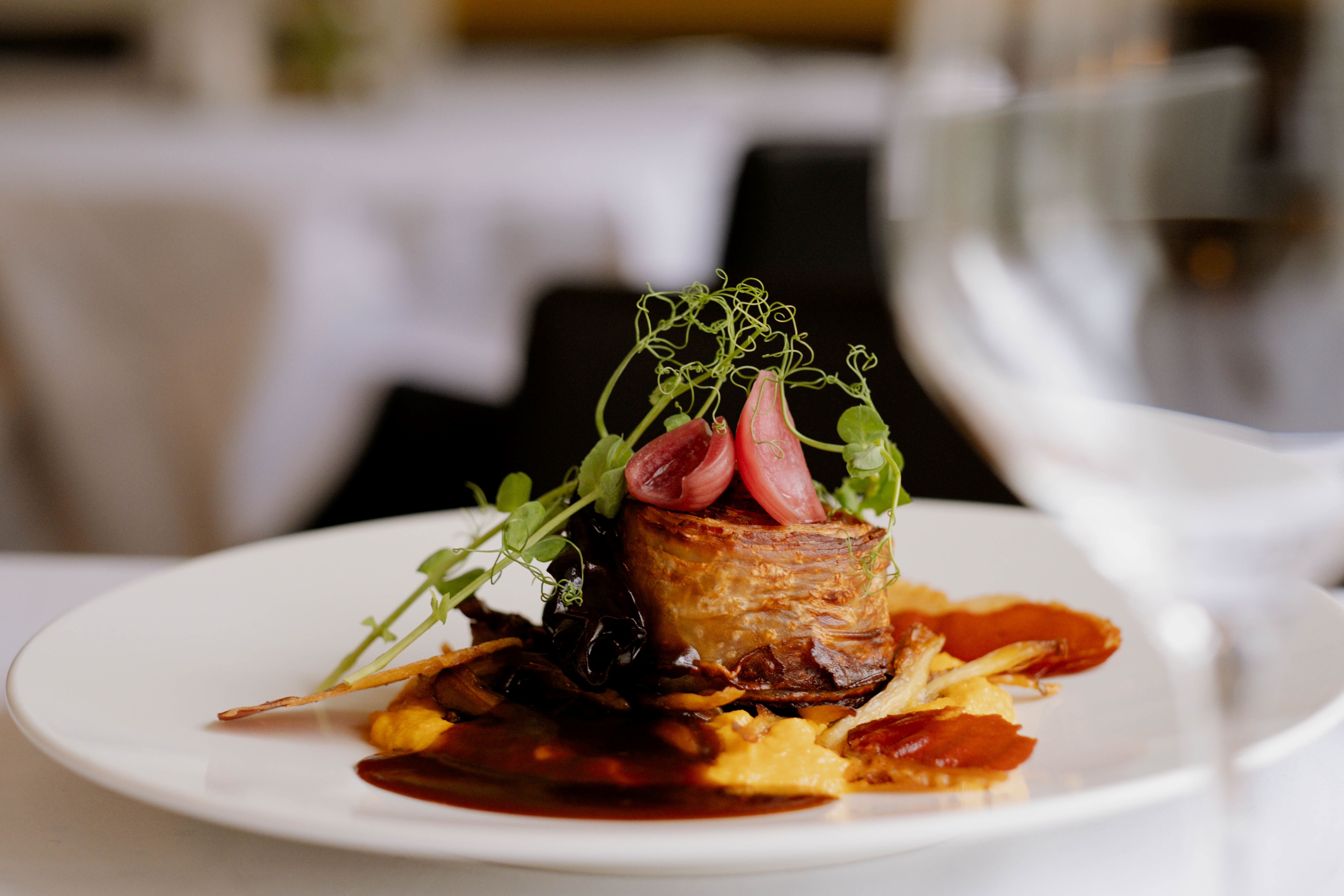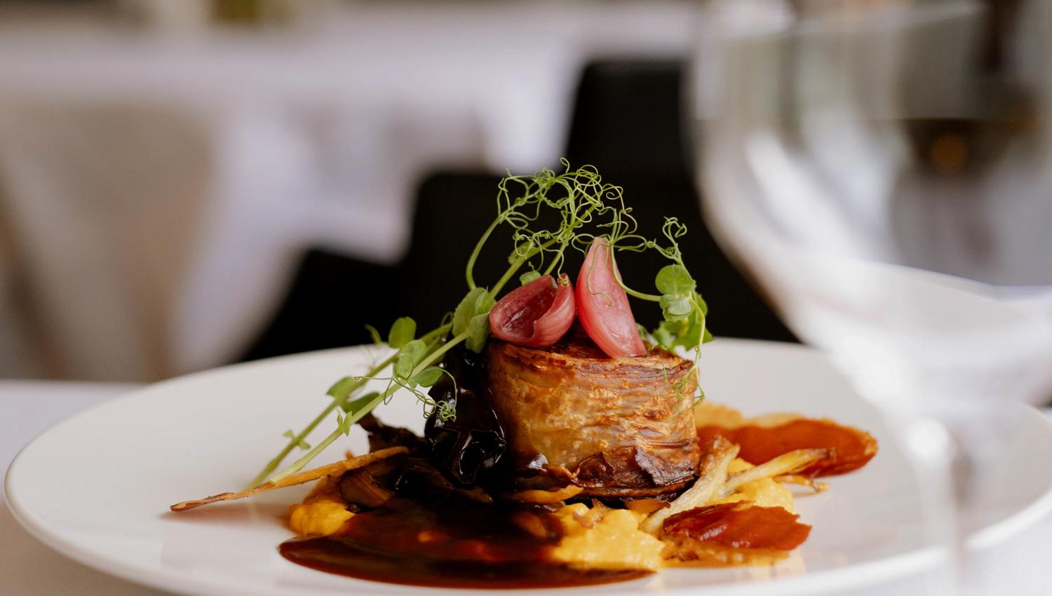 Røros-regionen har blitt et kraftsentrum for lokalprodusert mat, og det er med stolthet vi på Vertshuset Røros fremstår som en av spydspissene for vår matkultur. Restauranten ligger i hovedbygningen i Rammgården og rommer opptil 50 personer. I omgivelser inspirert av 1800-tallets borgerskapsstuer på Røros, tilbyr vi 3 retters meny, avstemt etter sesongens beste råvarer. Disse menyene endres for hver måned.