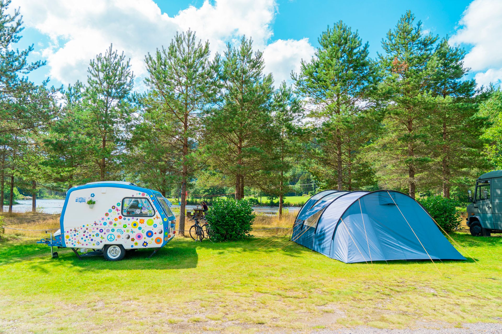 Mange laksefiskere bor også på campingen.